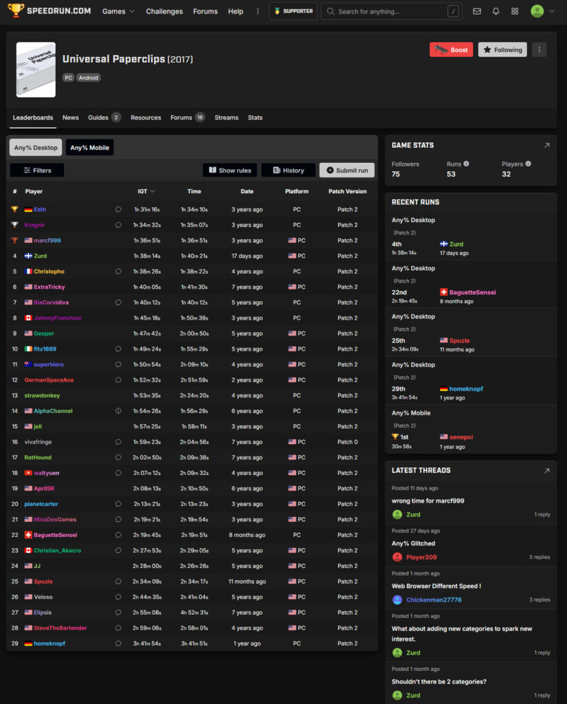 Universal Paperclips – A Guide and my History for a Speedrun